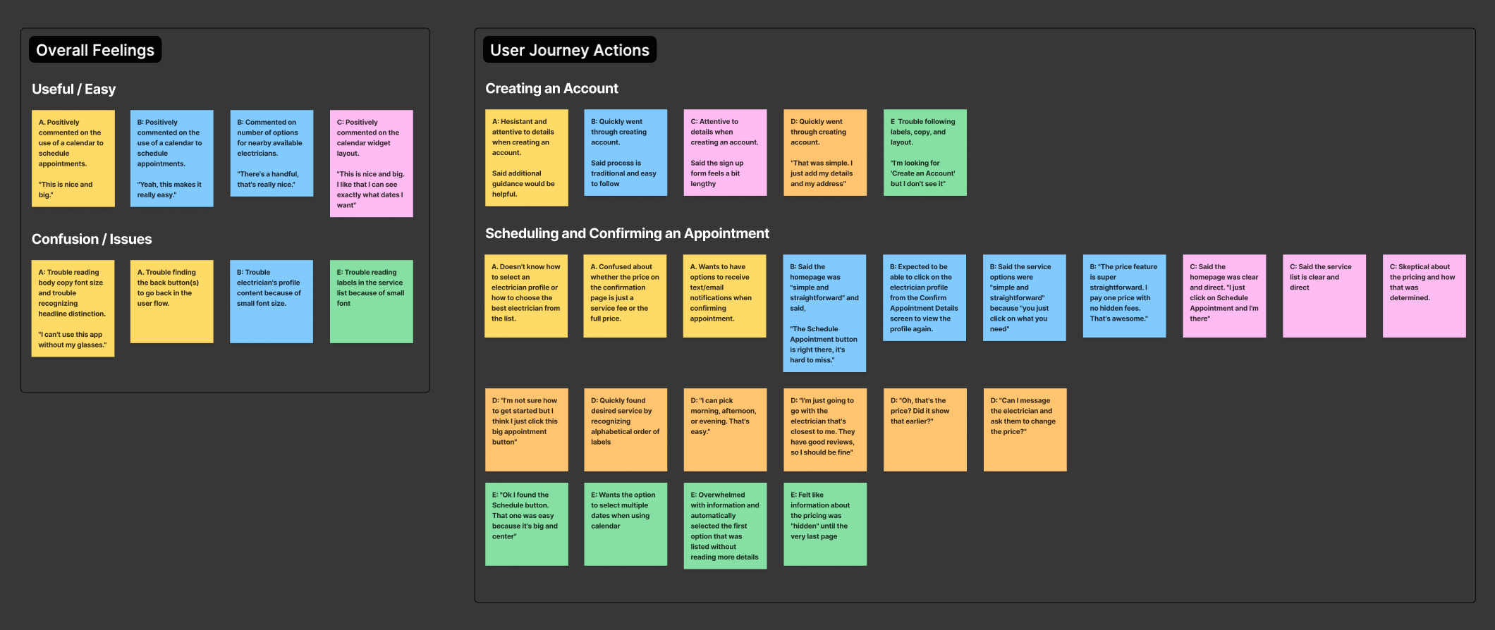 I conducted user interviews and foundational research to uncover key pain points, motivations, and potential solutions. I interviewed eight homeowners to understand their current process for finding reliable electricians.