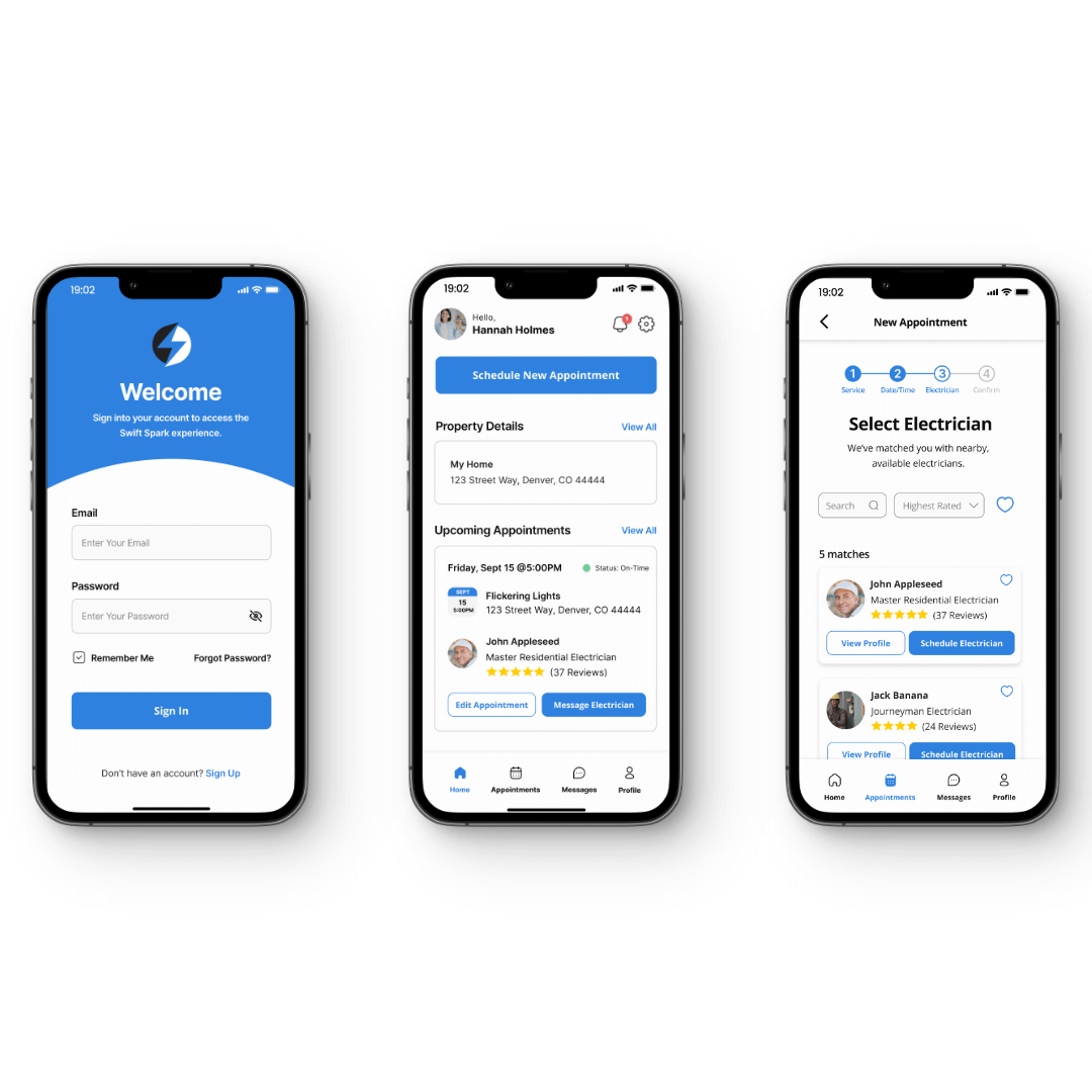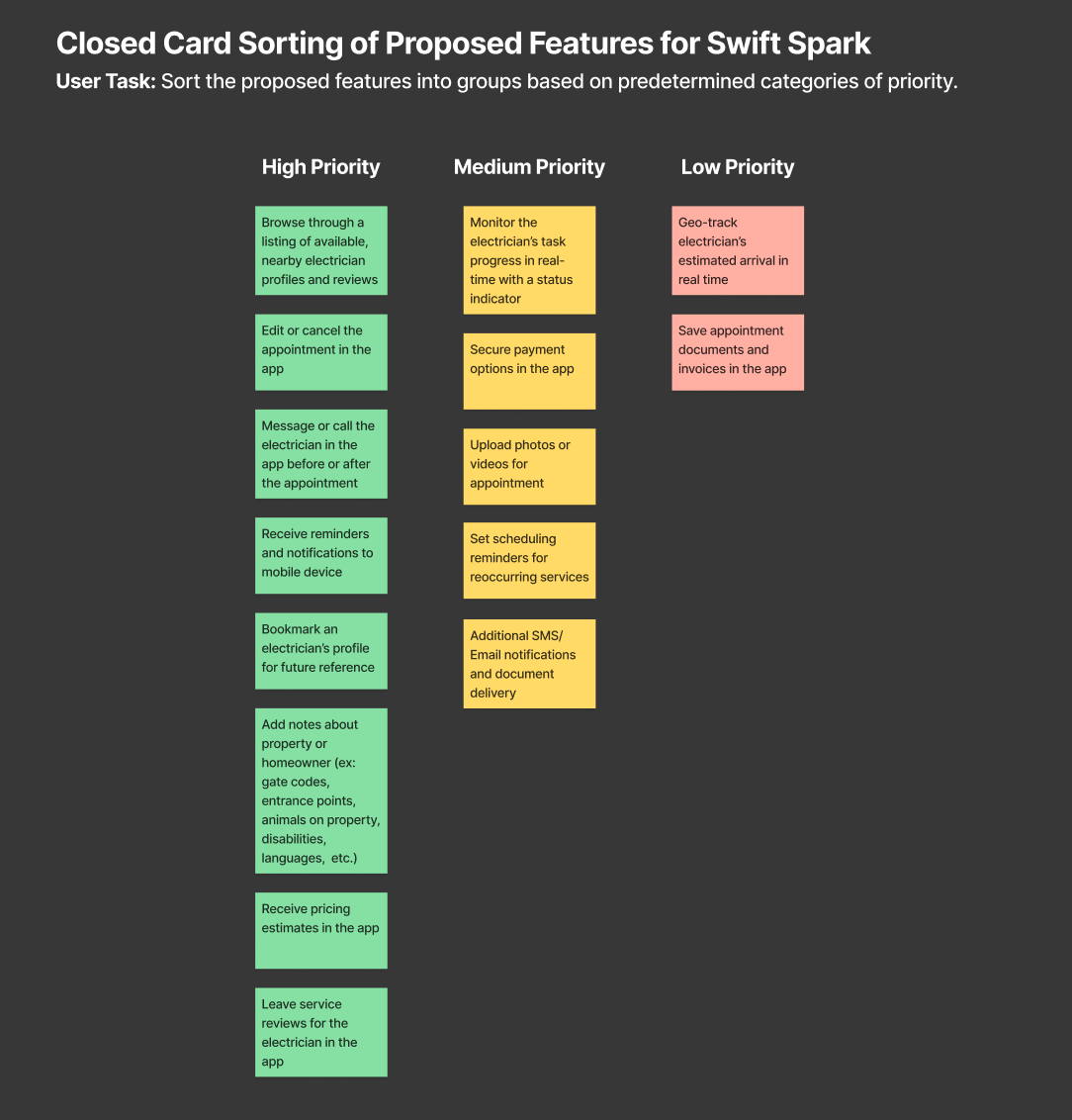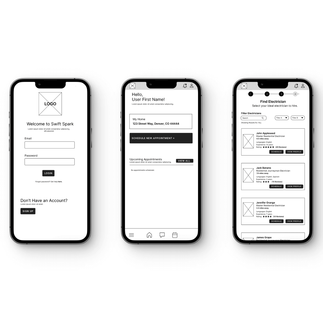 I explored creative design solutions for Swift Spark, using research insights to shape key features and user flows. To refine the design, I held a card-sorting session with participants to prioritize features based on homeowner needs.