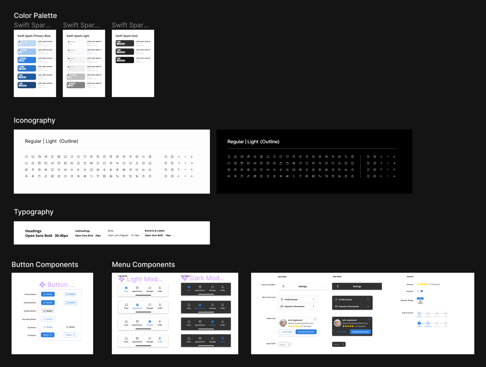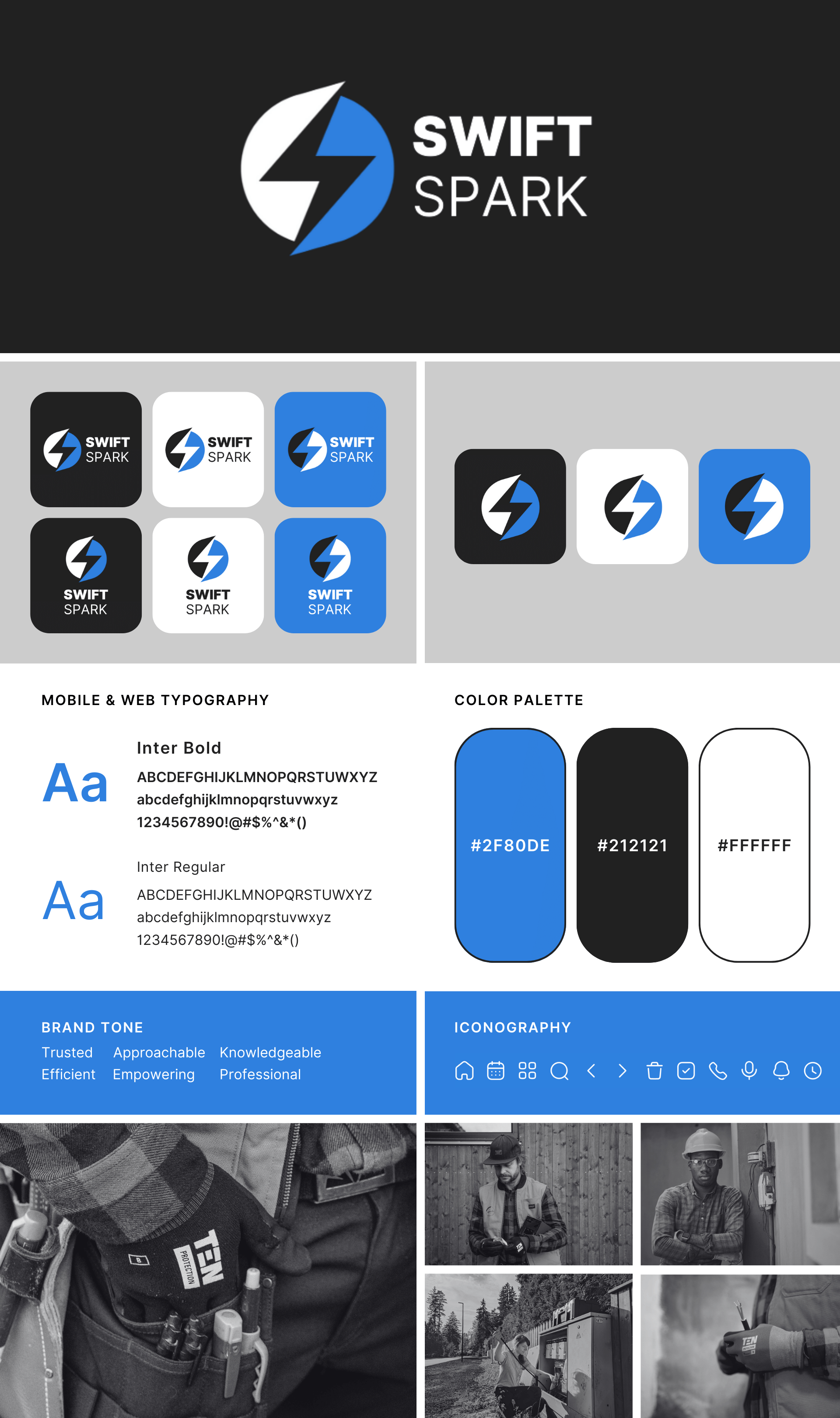 Although Swift Spark is only a conceptual mobile app project, I created a brand style guide to maintain consistency throughout the design process.